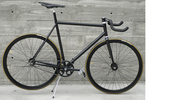Black Phil Wood single fixed high flange 36 hole hub triple laced to Black Non-Machined Deep-V
